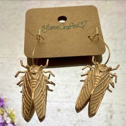 Cicada Earrings | Bug Earrings | Gold Bug Earrings | Novelty Earrings | Quirky Earrings | Statement Earrings | Whimsical Earrings $9Maricopa, AZ