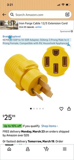 10-50P to 14-50R Adapter, 50Amp 3 Prong Male to 4 Prong Female, Compatible with RV, Household Appliances$20San Antonio, TX
