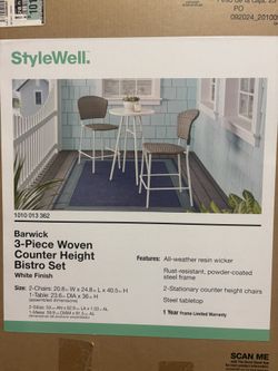 New 3-Piece Outdoor Wicker Counter Height Bistro Table + Chairs Set$120Brooklyn Center, MN