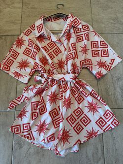 Shein Orange/Cream One Piece Romper Featuring a Sun/ Geometric Pattern Size Large$12Deltona, FL