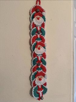 Vtg Christmas Bell Wall Hanging featuring a stack of Santa Claus and Wreaths$15Deltona, FL