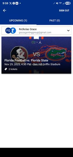 Florida Vs. Florida State Football Game 2 Tickets$100Orlando, FL