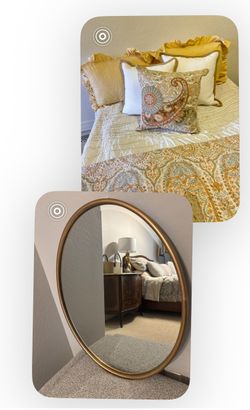 14 pc set of queen sized pottery barn bedding + rugs & oval Gold wall mirror.$345Scottsdale, AZ
