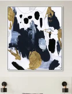 Oliver Gal 'Fugaz' Abstract Wall Art Framed Canvas Print Paint - Blue, Gold - 36 x 45 - White$250Houston, TX