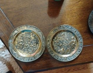 Set Of 2 Vintage English Brass Hammered Wall Plate w/Wheeling Decorative Tile They Are 6-in Round$15Guadalupe, AZ