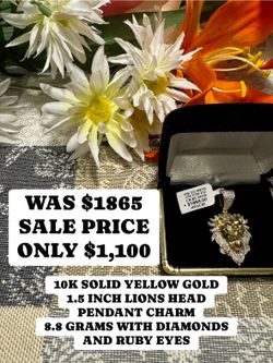 10K SOLID YELLOW GOLD 1.5 INCH LIONS HEAD PENDANT CHARM 8.8 GRAMS WITH DIAMONDS AND RUBY EYES$1,100Las Vegas, NV