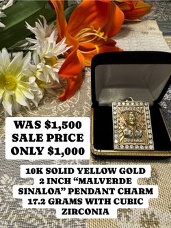 10K SOLID YELLOW GOLD 2 INCH "MALVERDE SINALOA" PENDANT CHARM 17.2 GRAMS WITH CUBIC ZIRCONIA$1,000Las Vegas, NV