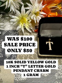 10K SOLID YELLOW GOLD 1 INCH "T" LETTER GOLD PENDANT CHARM 1 GRAM$50Las Vegas, NV