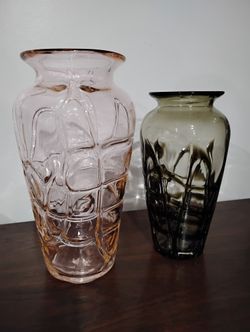 2 MG Margie's Garden glass blown vases blushing pink smokey charcoal modern design$60Phoenix, AZ