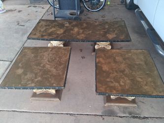 Vintage Crafted Immitation Marble Coffe Table And End Tables With Brass And Glass Outdoir Table$125Oklahoma City, OK