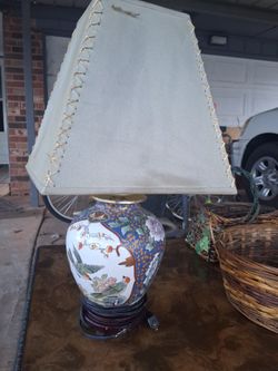 Antique Cinese Lamp With Raised Images Along With Several Wicker Baskets$35Oklahoma City, OK