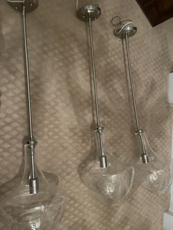 Three Pendant Lights 42 Inch. And One 15 Inch Wide, Drum Light Brush Nickel.$180Huntersville, NC