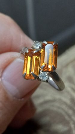Vtg Emerald Cut Citrine Silver Tone Ring. Sz 9$12San Antonio, TX
