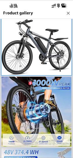 Electric Mountain Bike - 1000W Peak Motor, 21-Speed$600Queens, NY