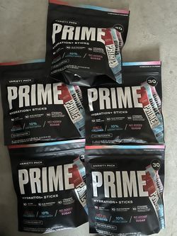 Prime hydration packets 5 packs of 30 = 150 sticks variety packs worth $150 electrolytes drink mix$50Carlsbad, CA