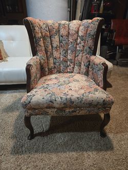 Vintage Floral Wingback Accent Chair – Solid Wood Trim & Queen Anne Legs$110Kingsburg, CA