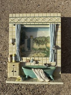Bathroom Diorama/ Miniature Bathroom Shadow Box Framed Wooden Box$40Garland, TX