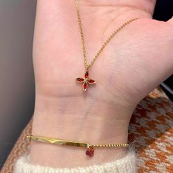 Silver-plated red stone clover light luxury high-end$100Orlando, FL