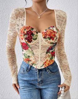 BLACK COLOR FLORAL LACE HOLLOW ROUND NECK LONG SLEEVE CORSET TOP ( LARGE SIZE )$20Bothell, WA