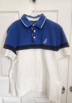 Vintage Nautica Short Sleeve Polo Shirt Color Block Blue White Mens SZ L $10Collegedale, TN