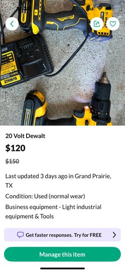 20 Volt Dewalt$120Grand Prairie, TX