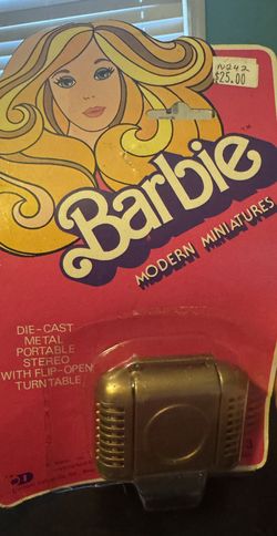 Barbie modern miniatures die-cast metal portable stereo with flip open turntable (1976)$25Goose Creek, SC