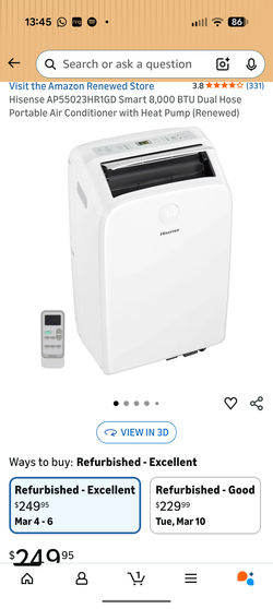 Hisense 8k BTU portable HVAC R32$140Los Angeles, CA