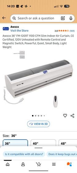 Awoco 36" 1100cfm air curtain$80Los Angeles, CA