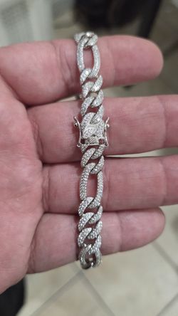 8.5" Sterling Silver Cz Diamond Figaro Bracelet $160Philadelphia, PA