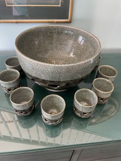 Vintage Japanese Somayaki Green Crackle Ceramic Punch Bowl Set$85Stuart, FL