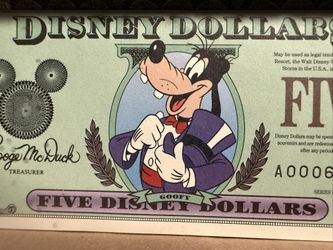 1997 Disney Dollar $5 Goofy Mint Crisp Five Digit Serial Number 25Th Anniversary$95Federal Way, WA
