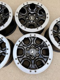 SET OF 5 FORD BRONCO SASQUATCH OEM WHEEL RIM 17” BLACK SILVER BEADLOCK 10388$1,000Houston, TX