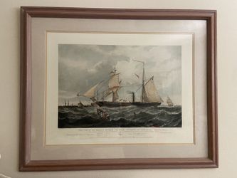 Vintage Framed Aquatint Etching Print-The View of Her Majesty's Steam Frigate Cyclops$225Escondido, CA