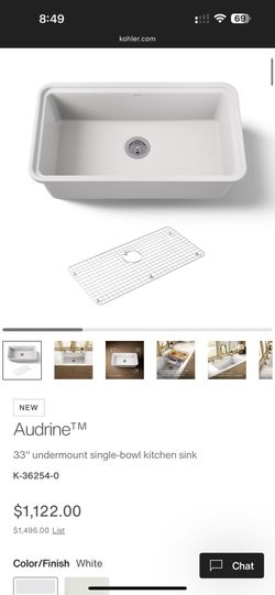 Kohler Audrine 33” undermount single-bowl kitchen sink in white color LAVAPLATOS DE COCINA$700Miami, FL