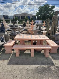 Concrete Square Stone Mosaic Picnic Table with 4 Benches/ Outdoor Patio Furniture$1,000Medley, FL