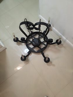 Round wrought iron chandelier in Gothic style with 6 lights. Heavy. Measures 28 inches wide. AS IS$20Fort Lauderdale, FL