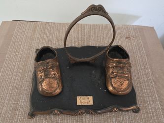 Photo frame with base, vintage style from the 1960s, featuring a bronze-plated baby shoe design. 9"W x 7"D x 5"H$25Fort Lauderdale, FL