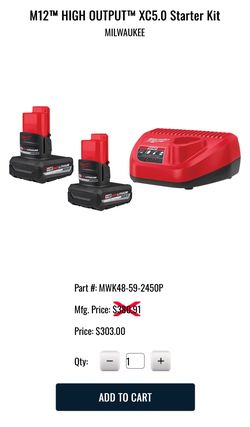Milwaukee M12 12V Lithium-Ion XC High Output 5.0 Ah Battery Pack (2-Pack) Starter Kit with Charger$200Pembroke Pines, FL