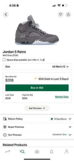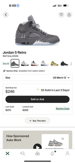 Wolf Grey Jordan 5 Size 10$260Spring Valley, CA