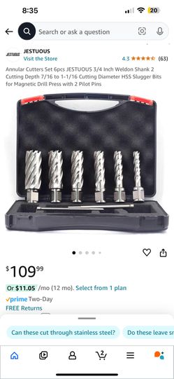 Annular Cutters Set 6pcs JESTUOUS 3/4 Inch Weldon Shank 2 Cutting Depth 7/16 to 1-1/16 Cutting Diameter HSS Slugger Bits for Magnetic Drill Press with$80Staten Island, NY