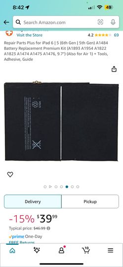 Repair Parts Plus for iPad 6 | 5 (6th Gen | 5th Gen) A1484 Battery Replacement Premium Kit (A1893 A1954 A1822 A1823 A1474 A1475 A1476, 9.7") (Also for$30Staten Island, NY