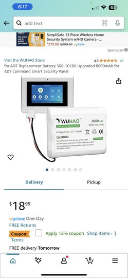 for ADT Replacement Battery (contact info removed)6 Upgraded 8000mAh for ADT Command Smart Security Panel$10Staten Island, NY