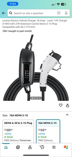 Lectron Electric Vehicle Charger 16 Amp - Level 1 EV Charger (110V) with 21ft Extension Cord & Nema 5-15 Plug Compatible with All J1772 EVs$100Staten Island, NY