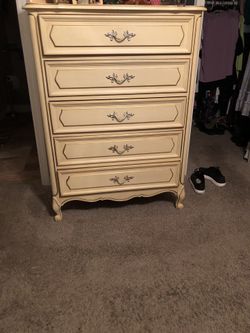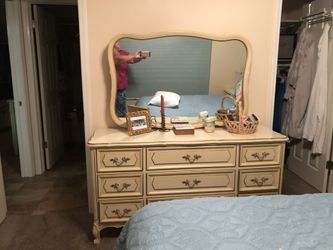 Dresser and mirror. Dresser is 59” wide, 32” tall and 18 deep. French Provençal nice piece to center your room around. All drawers worker well.$199NEW PRT RCHY, FL