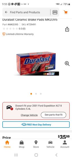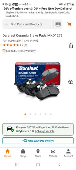 Ford Pads. MKD1279, New Duralast Ceramic Rear Brakes For Expedition 07-09.$20Covina, CA