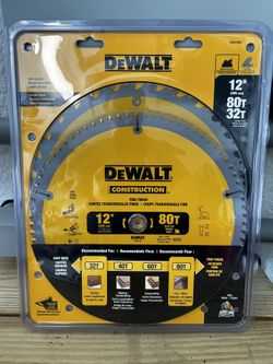 (New) DEWALT 12-Inch Miter Saw Blade, Crosscutting, Tungsten Carbide, 80-Tooth and 32-Tooth, 2-Pack (DW3128P5, DW3123), yellow. $80Fort Myers, FL