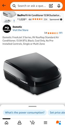 Dometic FreshJet 3 Series, RV Rooftop Standard Air Conditioner, 13.5K BTU, Black, Cool Only, No Pre-Installed Controls, Single or Multi-Zone
