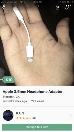 Headphone adapter Apple cord$10Stockton, CA