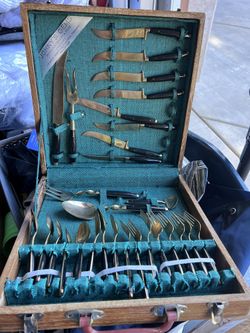 Vintage Siam Venus Flatware Bronze Goddess Brass 29pc In Wood Carry Case Bangkok Thailand$50El Cajon, CA