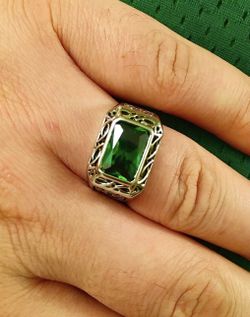 Mens Emerald Ring Radiant Cut Created Emerald Ring for Men 925 Sterling Silver $180Prosper, TX
